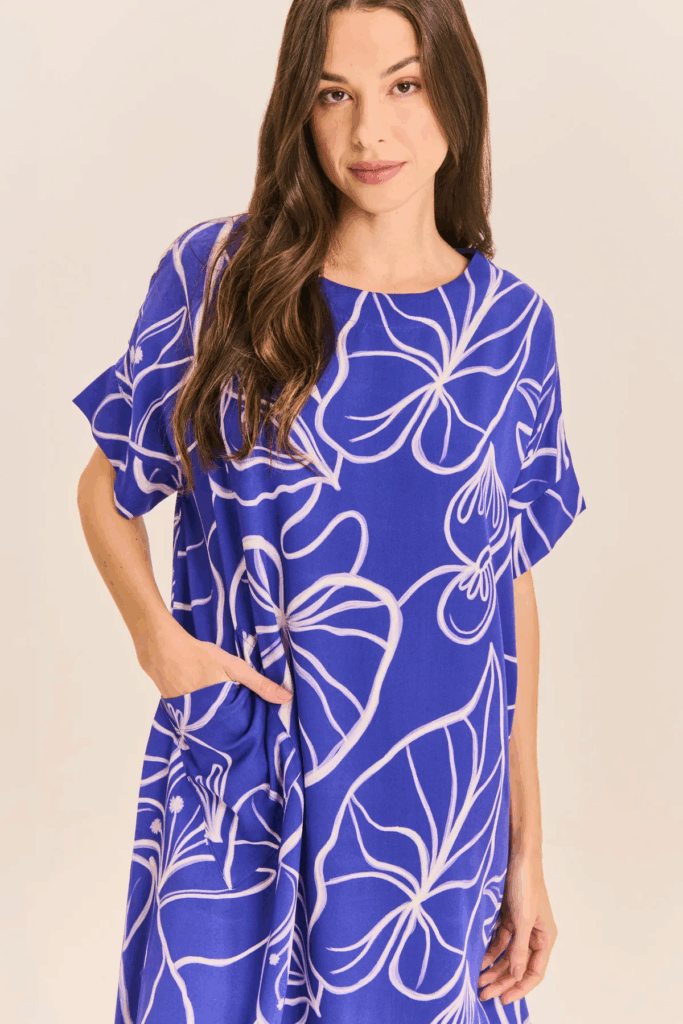 É uma cor que carrega sobriedade sem rigidez, ideal para quem busca harmonia e um toque clássico no visual. Assim, no verão da Papel Craft, o azul aparece em vestidos, calças e blusas que combinam leveza e sofisticação, provando que o escuro também pode ser leve.