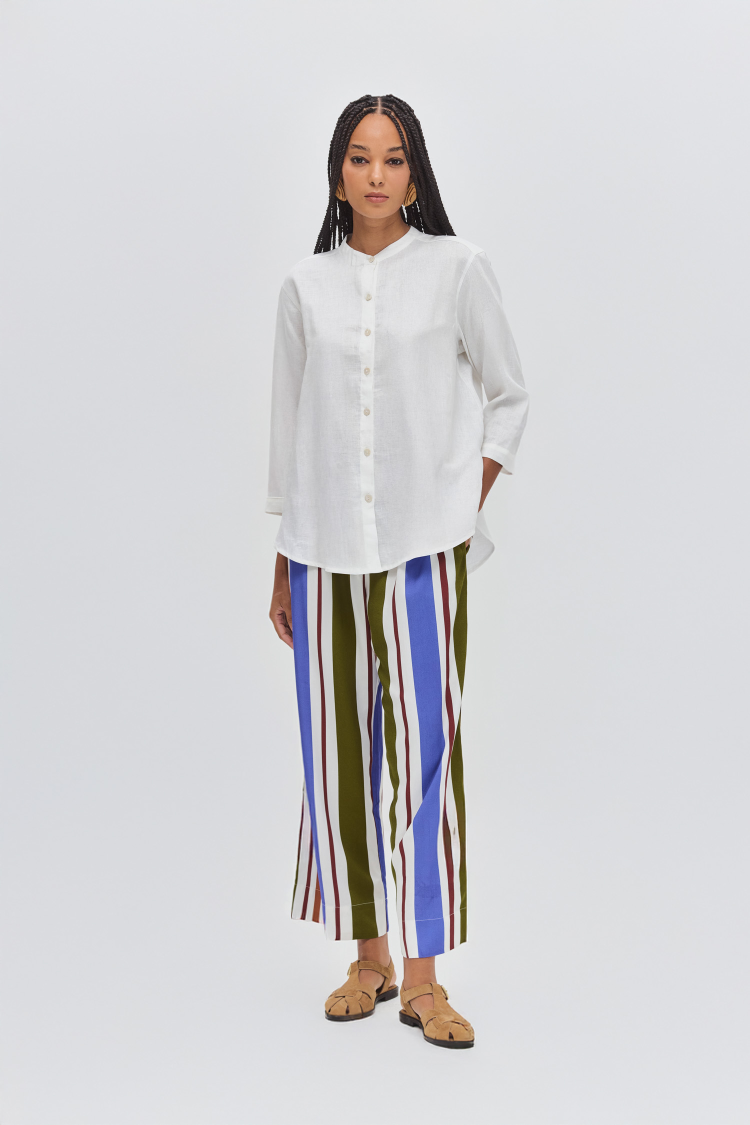Os looks monocromáticos são uma ótima forma de explorar essas cores. Um conjunto de linho em um único tom cria uma produção elegante, simples e atemporal.