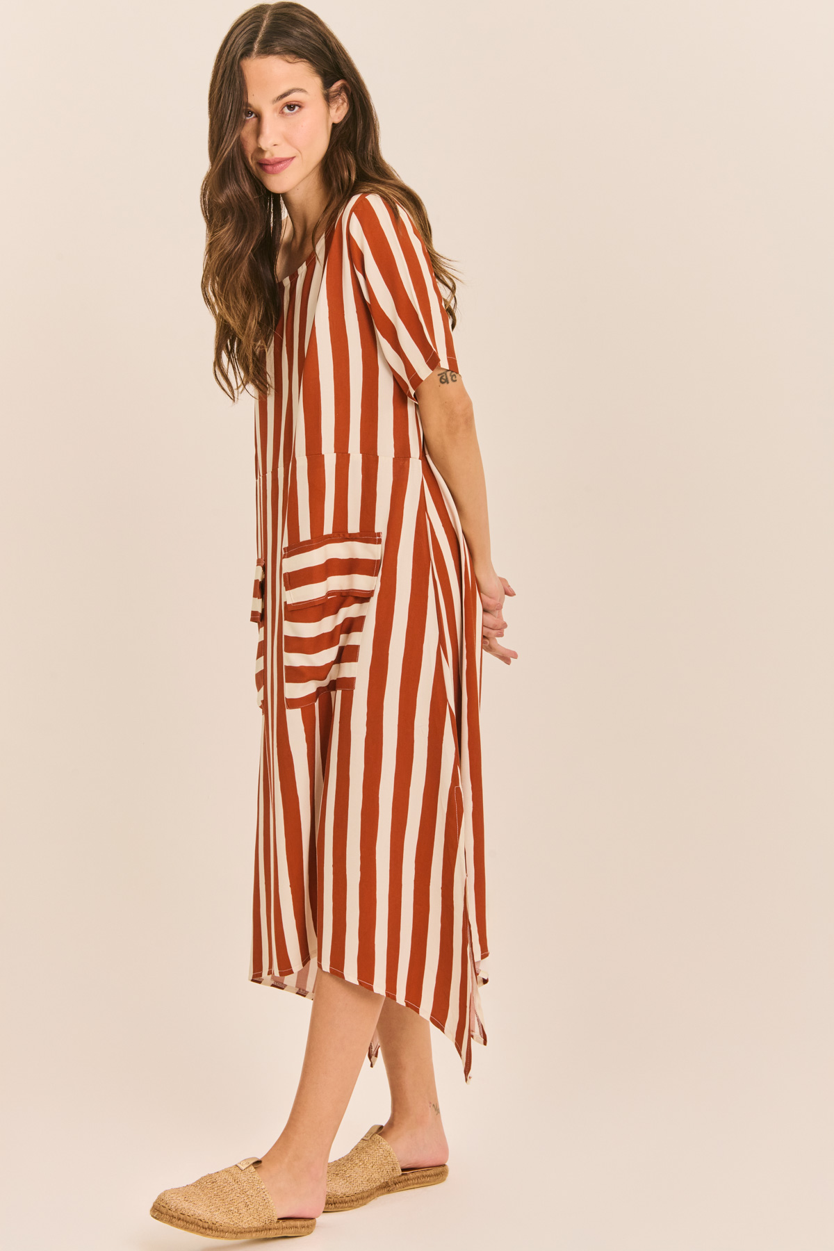 As modelagens do Verão 26 priorizam o caimento solto e confortável, sem perder a sofisticação. Vestidos midi e longos, blusas com mangas largas e calças de corte reto, são escolhas que oferecem liberdade e versatilidade.